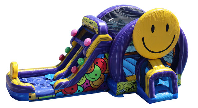 OOOHHHHH - The Happy Faces there will be with this waterslide!Double your fun with our Happy Face Combo Bounce. Unit also comes with a basketball hoop on the inside.